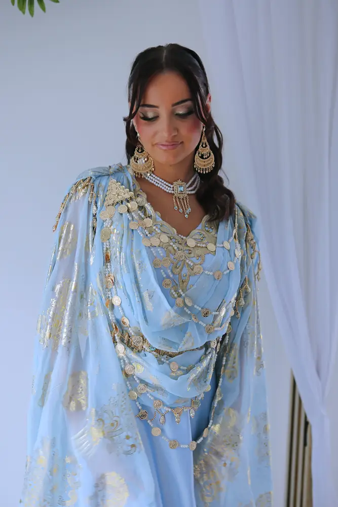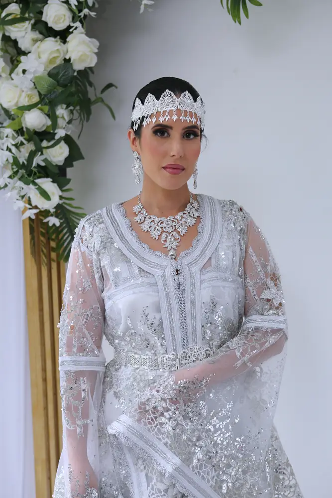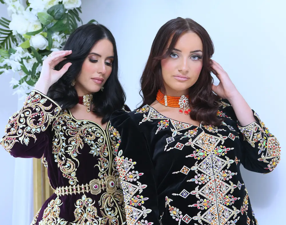 NR Mariage, c’est aussi une sélection unique de robes traditionnelles inspirées des cultures de l’Algérie, de la Tunisie et du Maroc — des tenues somptueuses aux détails raffinés et aux bijoux étincelants.