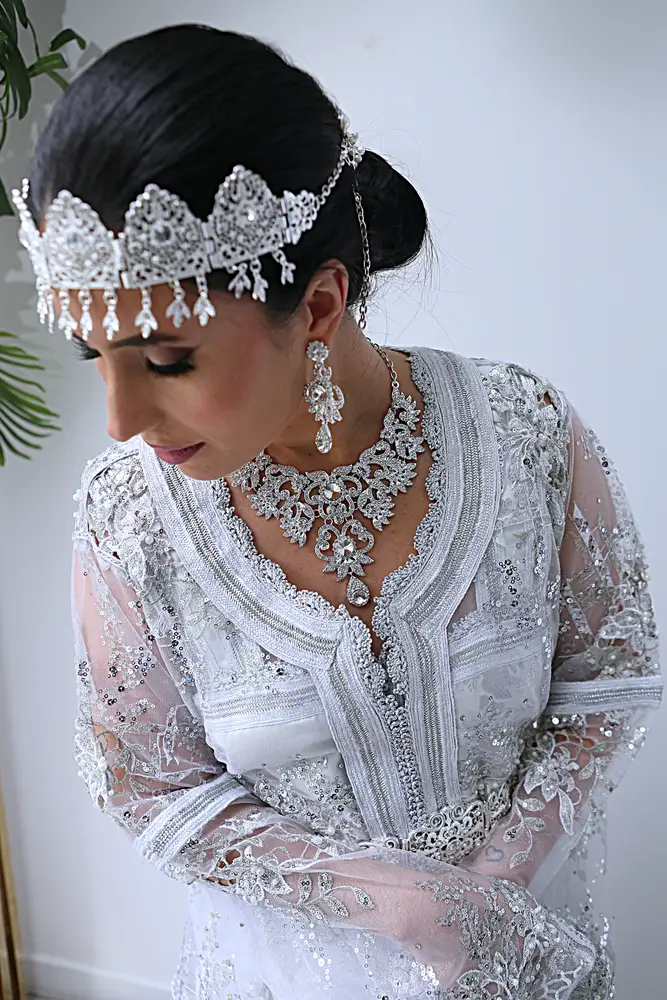NR MARIAGE ce sont aussi les Robes traditionnelles en location, qui vous feront voyager dans différentes tenues de l’Algérie, la Tunisie et le Maroc, des robes somptueuses, des bijoux étincelants et une attention particulière pour faire de vous la plus belle. Vous retrouverez plusieurs Karakou avec ou sans traine, Chaouia, Ferganie, Kabyle, Blousa, Princesse Oriental, Keswa, Caftan…. En location individuelle. Cette prestation peut vous être proposée avec une Negafa / Machta pour le suivie en salle.